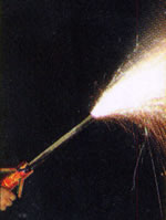 点火すると日本刀の先端から、約3m緑色の火花が噴き出ます。