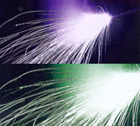 青紫の色ナイアガラ花火から緑色ナイアガラ花火に変色し火花が咲き出します。