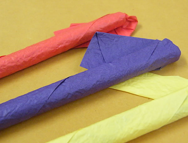 普通の花火は、紙あるいはビニールで火薬を取り巻いていますが、この花火は和紙です。