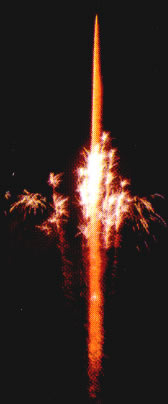 伝統の「虎の尾」の継承に挑んだ打上花火です。彗星のように、銀色の尾を引きながら打ち上がり、上空でバチバチと赤、緑小星といった数個の星が炸裂します。
