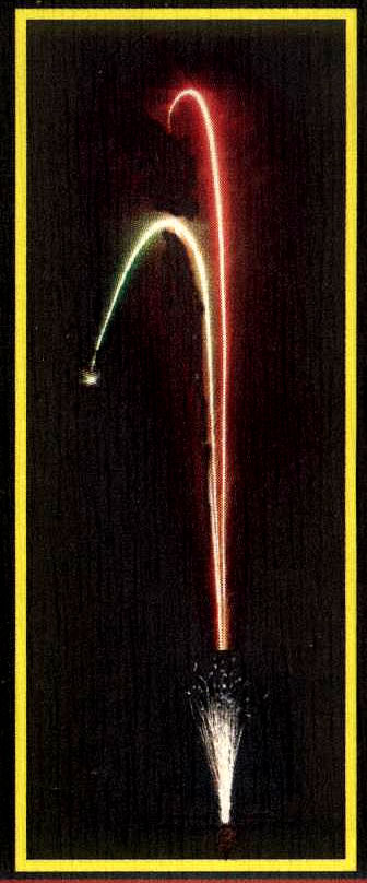 小星とともに、緑色と紅色の2つの星が、キラキラと火花を散らしながら上空高く打ち上がります。まるで、『ひこぼしとおりひめ』のようです。高さ約25m打上がります。