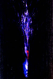 夜空に無数の青色の小星が一斉に花束状に約10m打ち上がります。