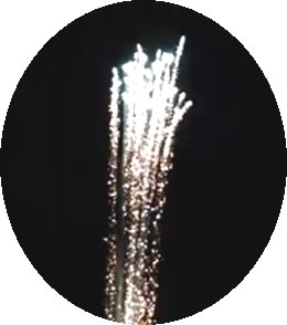 紫色星、緑色星、菊花(バリバリ音星)の三層の花束打上花火です。