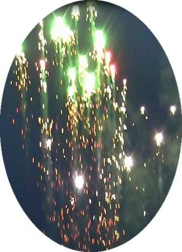 そして、最後に紅星と緑星と銀色の点滅星を華やかに約15~20m大きく打ち上がります。